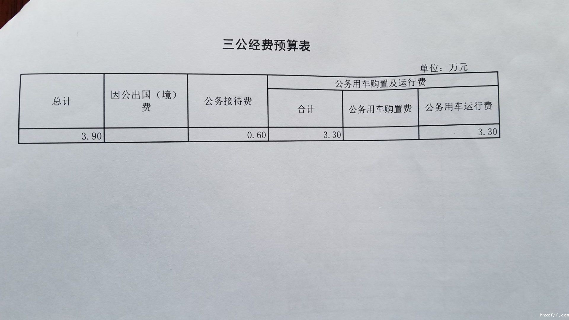 2016年“三公”经费预算数3.9万元,其中:因公出国(境)费0万元;公务接待费0.6万元;公务用车购置费0万元;公务用车运行费3.3万元,与2015年“三公”经费预算相同。