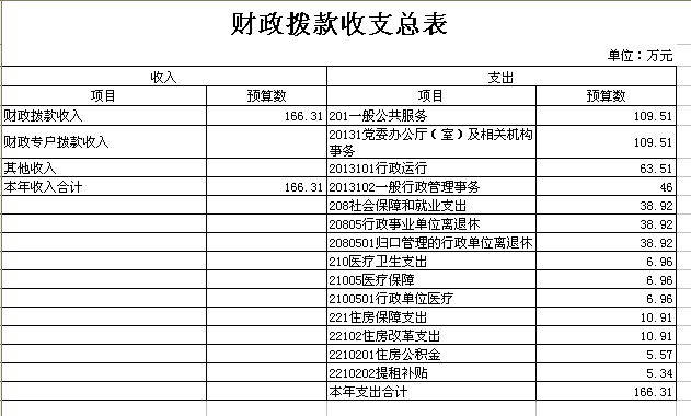 按照综合预算的原则,hhxcfjf机关工委所有收入和支出均纳入部门预算管理。收入包括:财政拨款收入166.31万元;其中:基本支出预算120.31万;业务性支出预算46万。